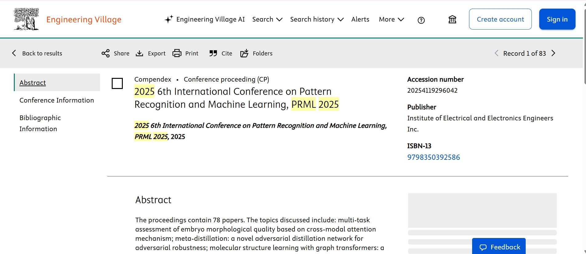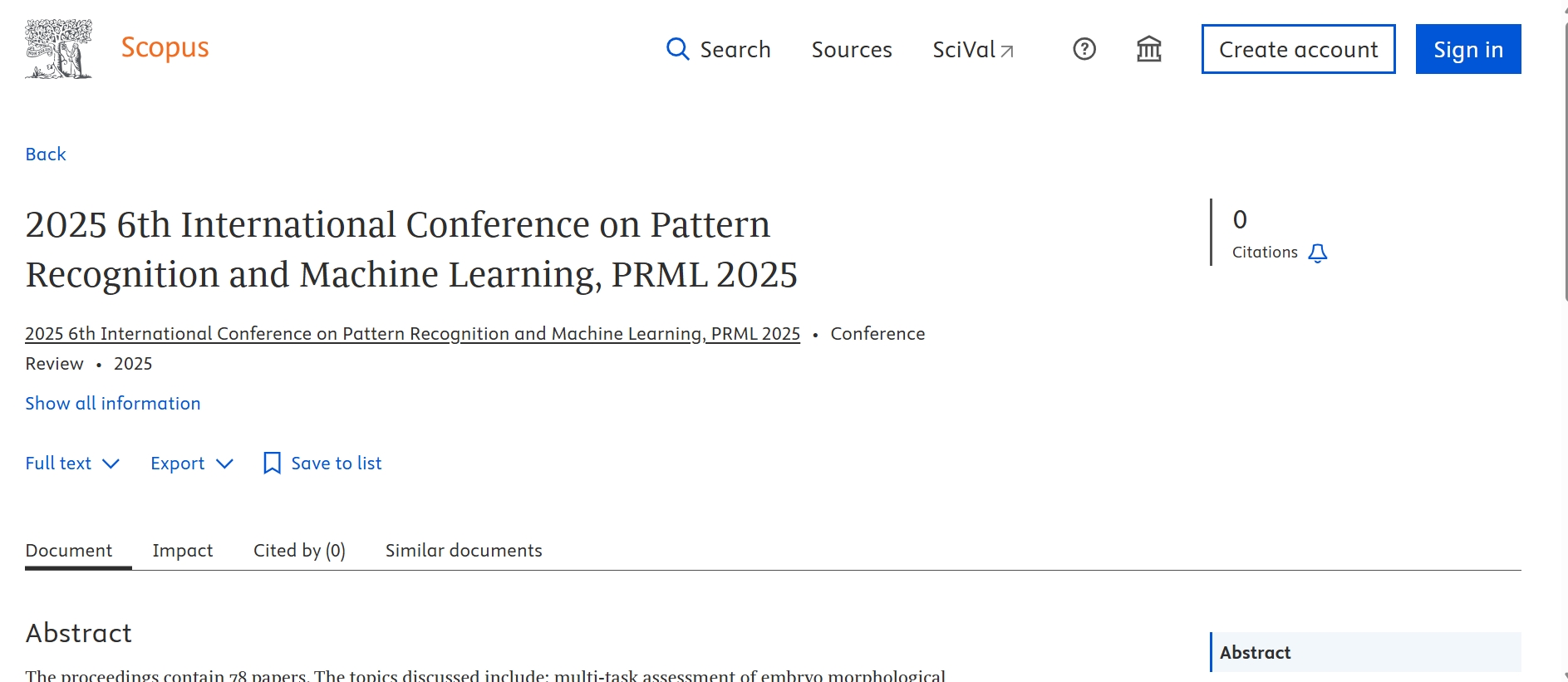 Accepted papers of PRML 2025 have been published into Conference Proceedings by IEEE (ISBN: 979-8-3503-9257-9), indexed by Ei Compendex and Scopus.